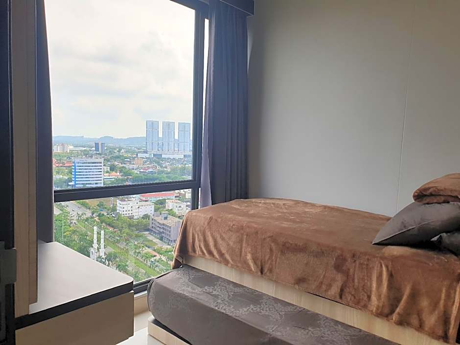 The well-equipped kitchen features a stovetop, a refrigerator, kitchenware and a microwave. The spacious family room offers air conditioning, a wardrobe, a balcony with city views as well as a private bathroom featuring a shower. The unit offers 3 beds.